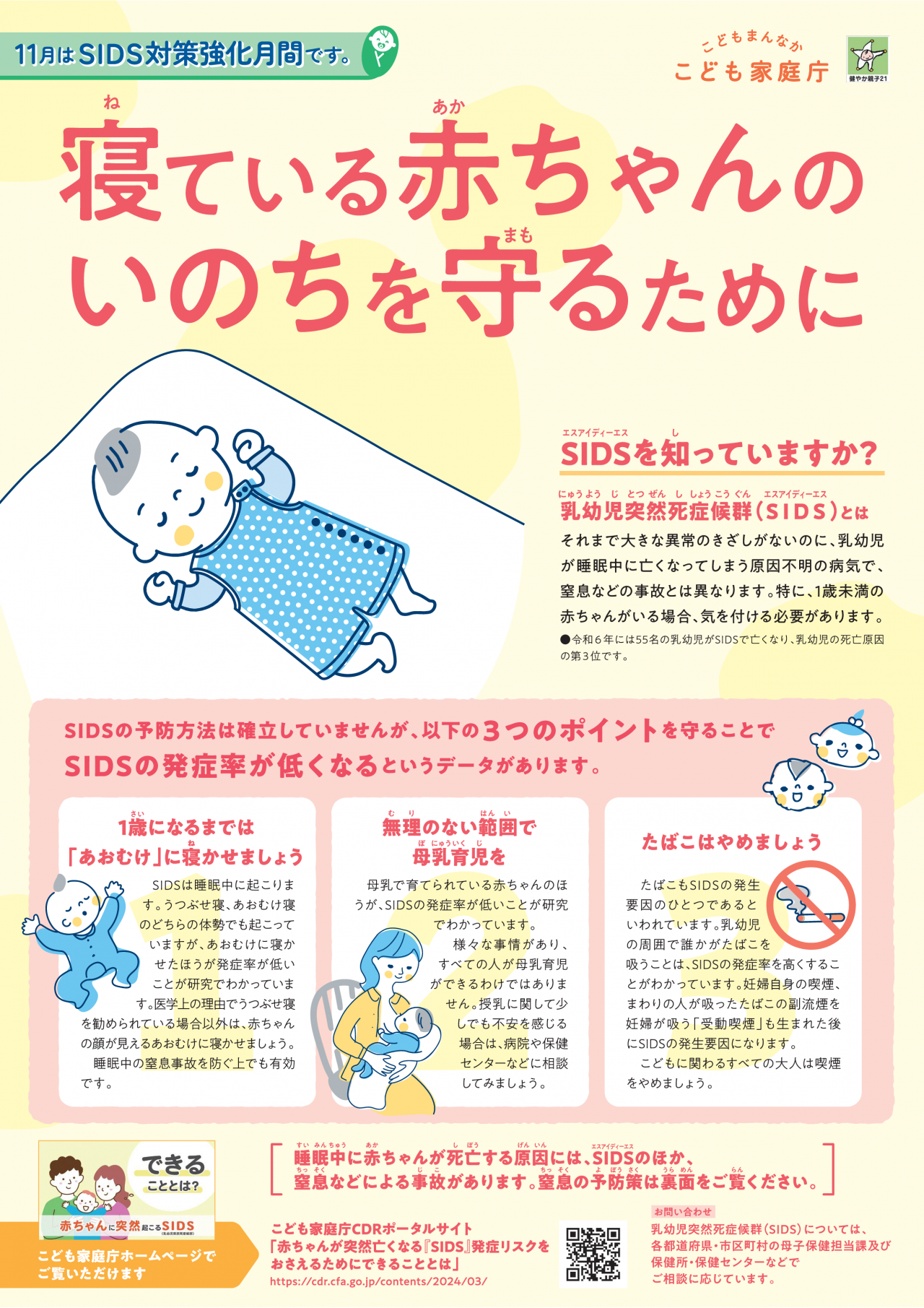 11 月は「乳幼児突然死症候群(SIDS)」の対策強化月間です
